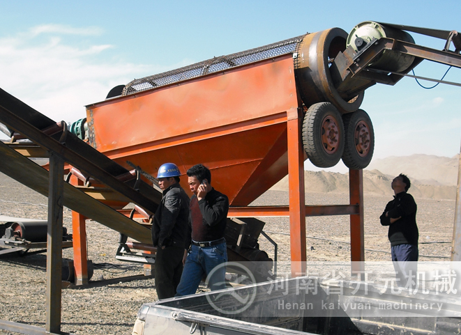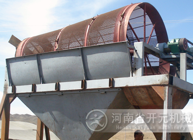 滾筒裝置傾斜安裝于機(jī)架上。電動(dòng)機(jī)經(jīng)減速機(jī)與滾筒裝置通過(guò)聯(lián)軸器連接在一起,驅(qū)動(dòng)滾筒裝置繞其軸線轉(zhuǎn)動(dòng)。當(dāng)物料進(jìn)入滾筒裝置后,由于滾筒裝置的傾斜與轉(zhuǎn)動(dòng),使篩面上的物料翻轉(zhuǎn)與滾動(dòng),使合格物料(篩下產(chǎn)品)經(jīng)滾筒后端底部的出料口排出,不合格的物料(篩上產(chǎn)品)經(jīng)滾筒尾部的排料口排出。由于物料在滾筒內(nèi)的翻轉(zhuǎn)、滾動(dòng),使卡在篩孔中的物料可被彈出,防止篩孔堵塞。滾筒篩砂機(jī)、滾筒篩分機(jī)與滾筒篩的原理構(gòu)造幾乎相同,是人們對(duì)它的認(rèn)識(shí)和叫法上存在差異。